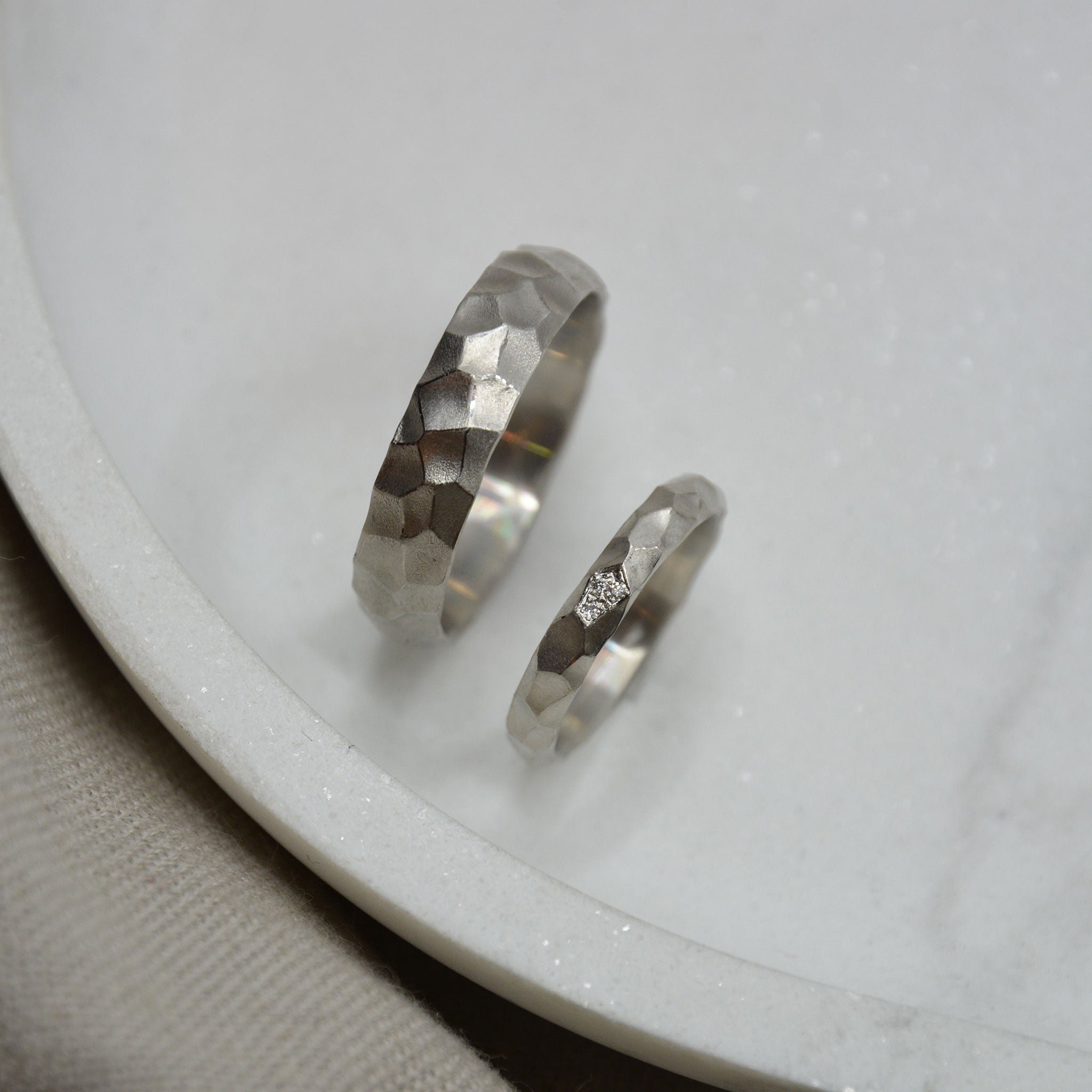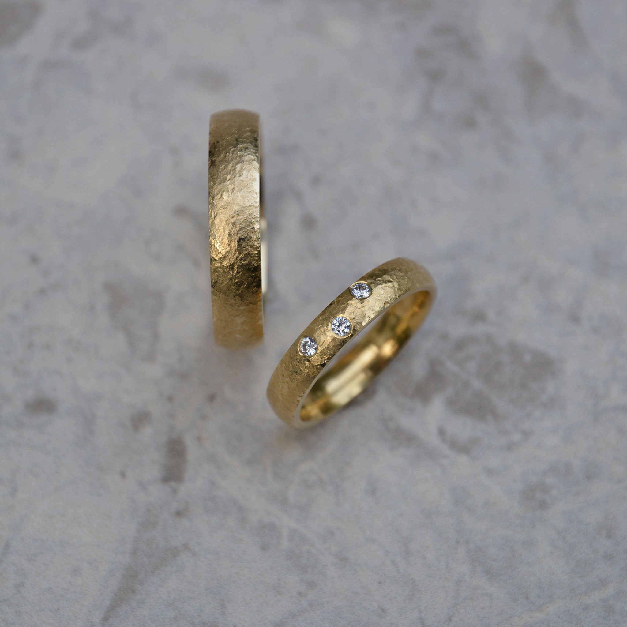 Ihr seid auf der Suche nach individuellen Eheringen? Ob klassisch oder mit ausgefallen Oberflächenstrukturen, ob mit oder ohne Edelsteinen bei uns seid ihr genau richtig. Lasst euch von unserer eigenen Ehering Kollektion inspirieren, oder bringt eure eigenen Ideen mit ein. Ob eine klassische Gravur, oder ein gravierter Fingerabdruck deines Lieblingsmenschen, wir tüfteln gemeinsam mit euch jedes Detail aus, damit eure Trauringe eure persönliche Verbindung perfekt widerspiegeln.